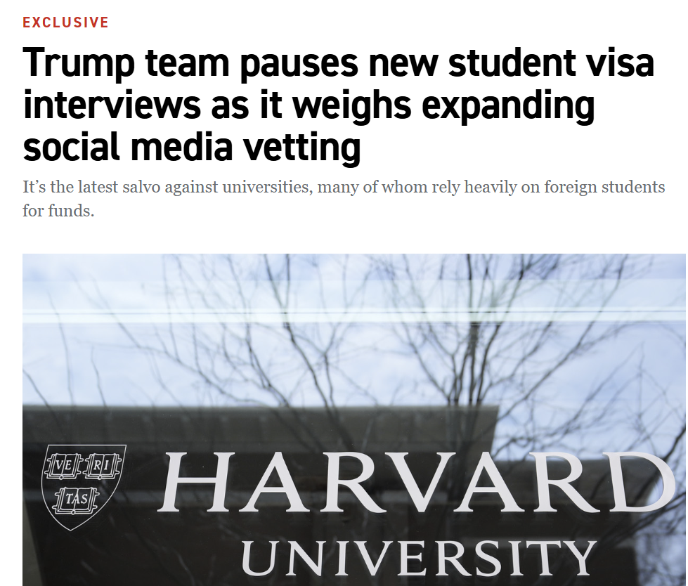 除了这个最新的针对国际学生的举措之外,特朗普政府还以“助长模糊不清的(种族)公平目标”和“纵容反犹主义”为由,冻结了对哈佛公共卫生学院的大量科研资助,后者对哈佛的科学研究造成了巨大影响。两项政策迅速引发学界与政界的强烈反弹,被批评为出于政治动机的报复性打击。